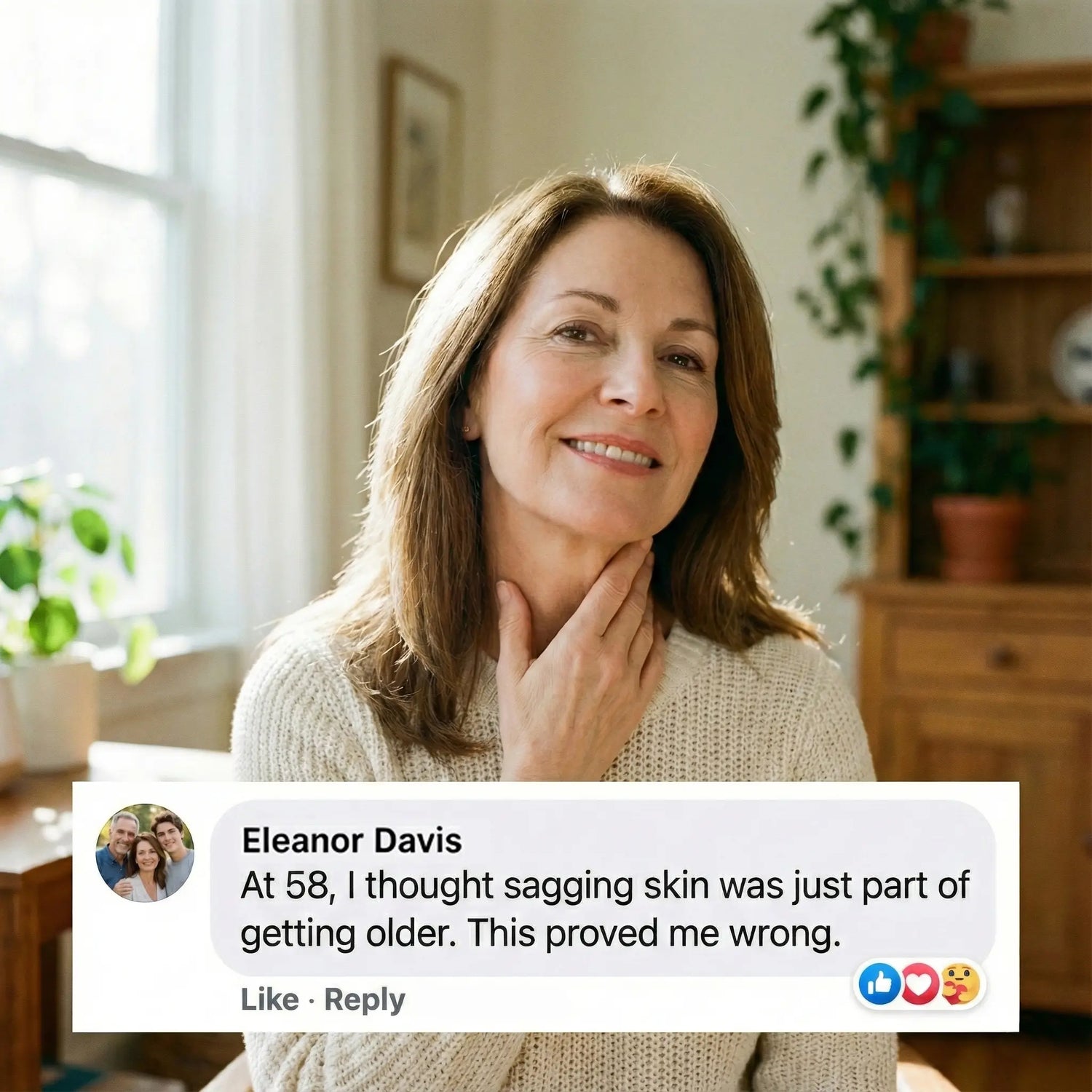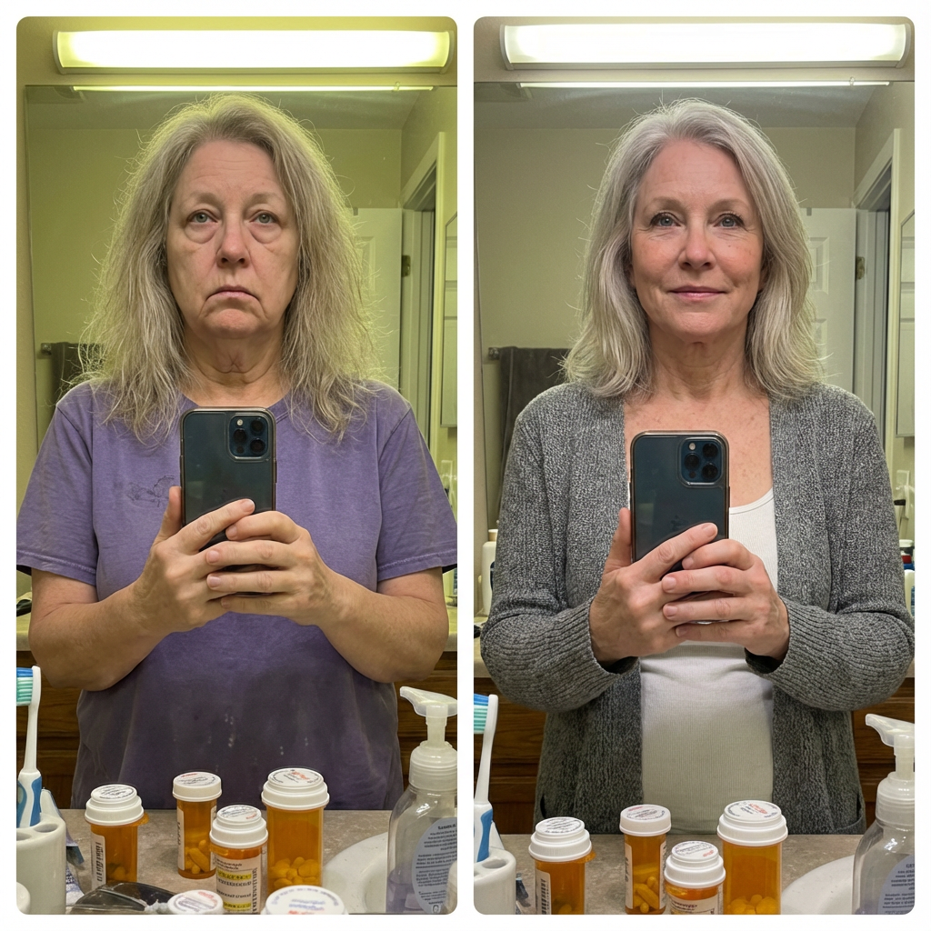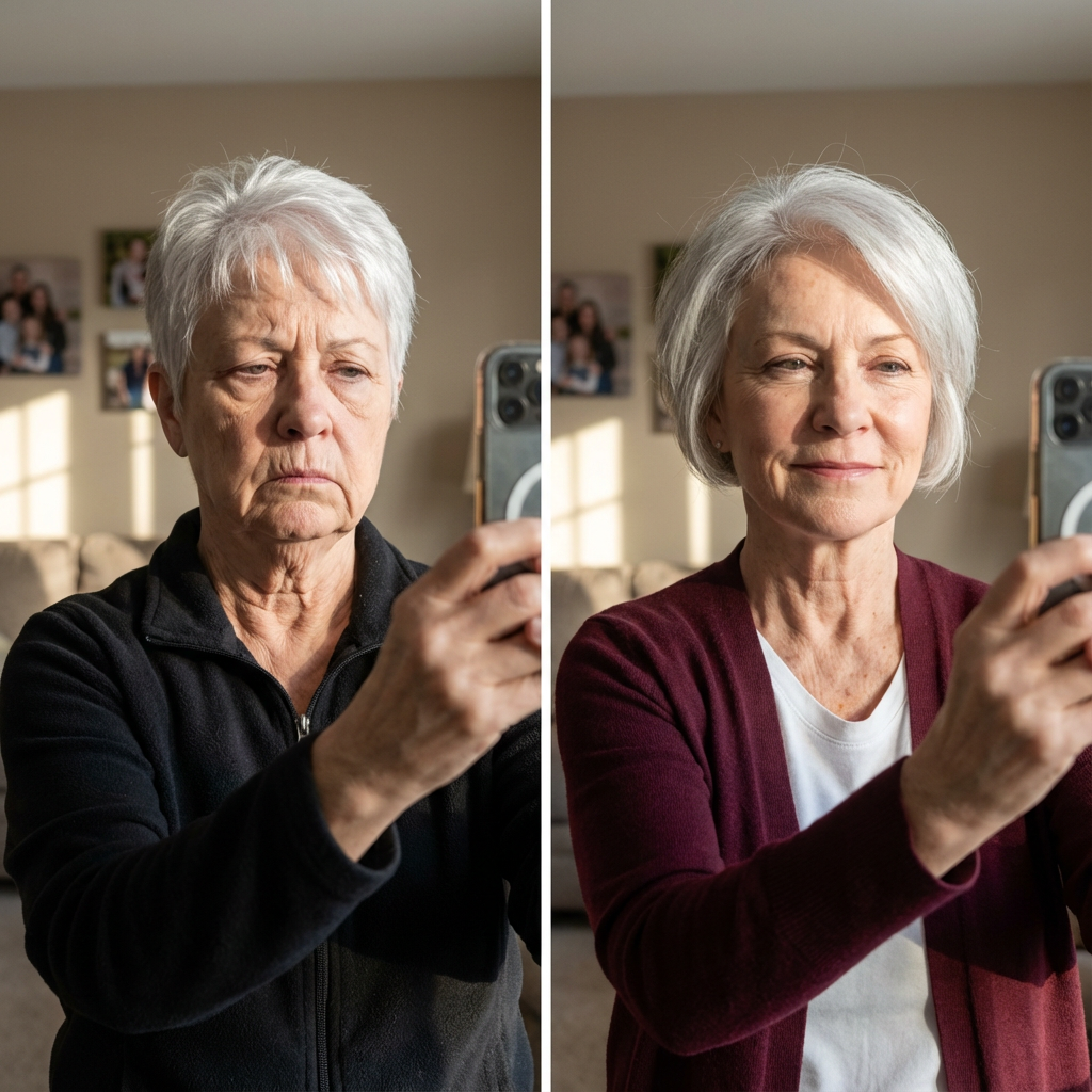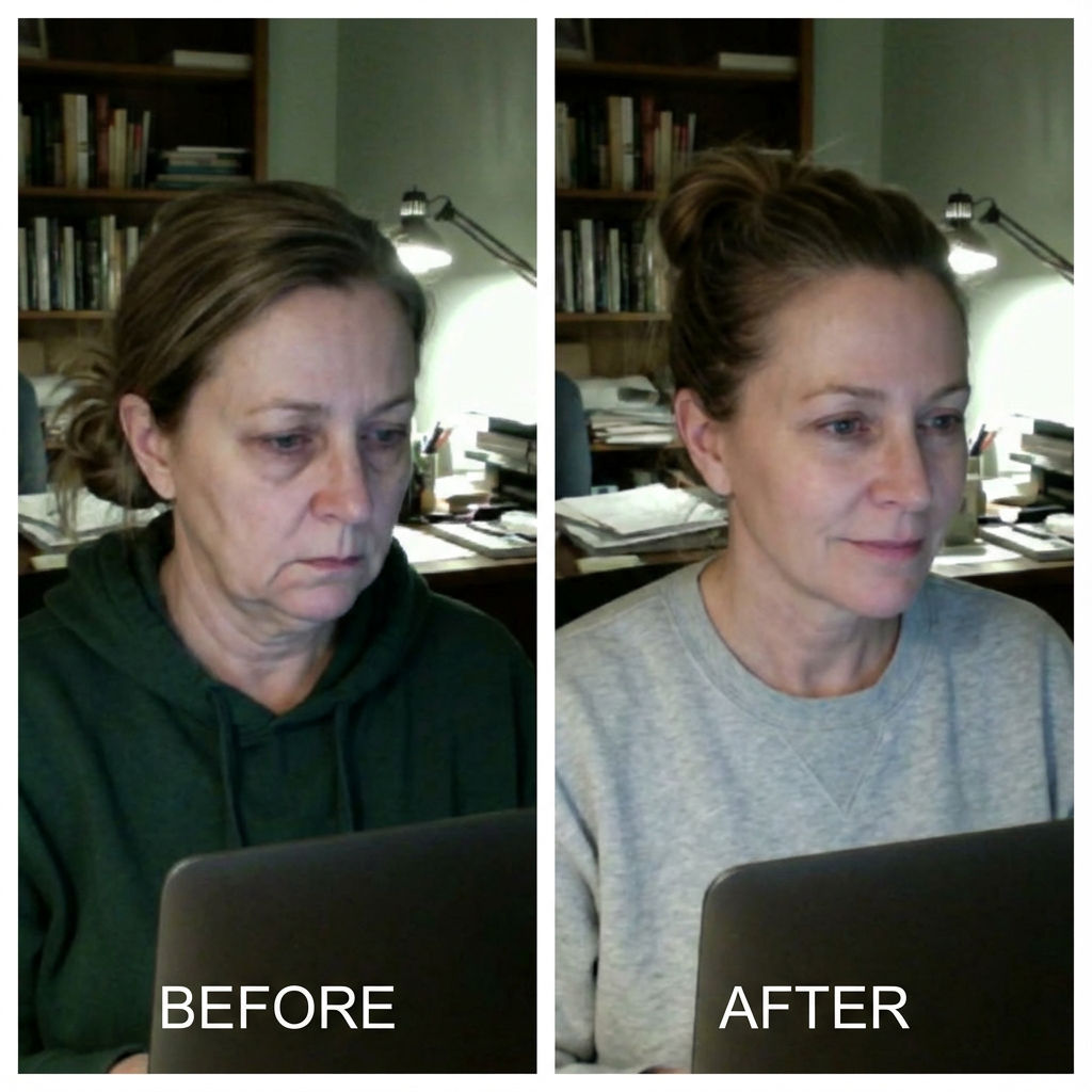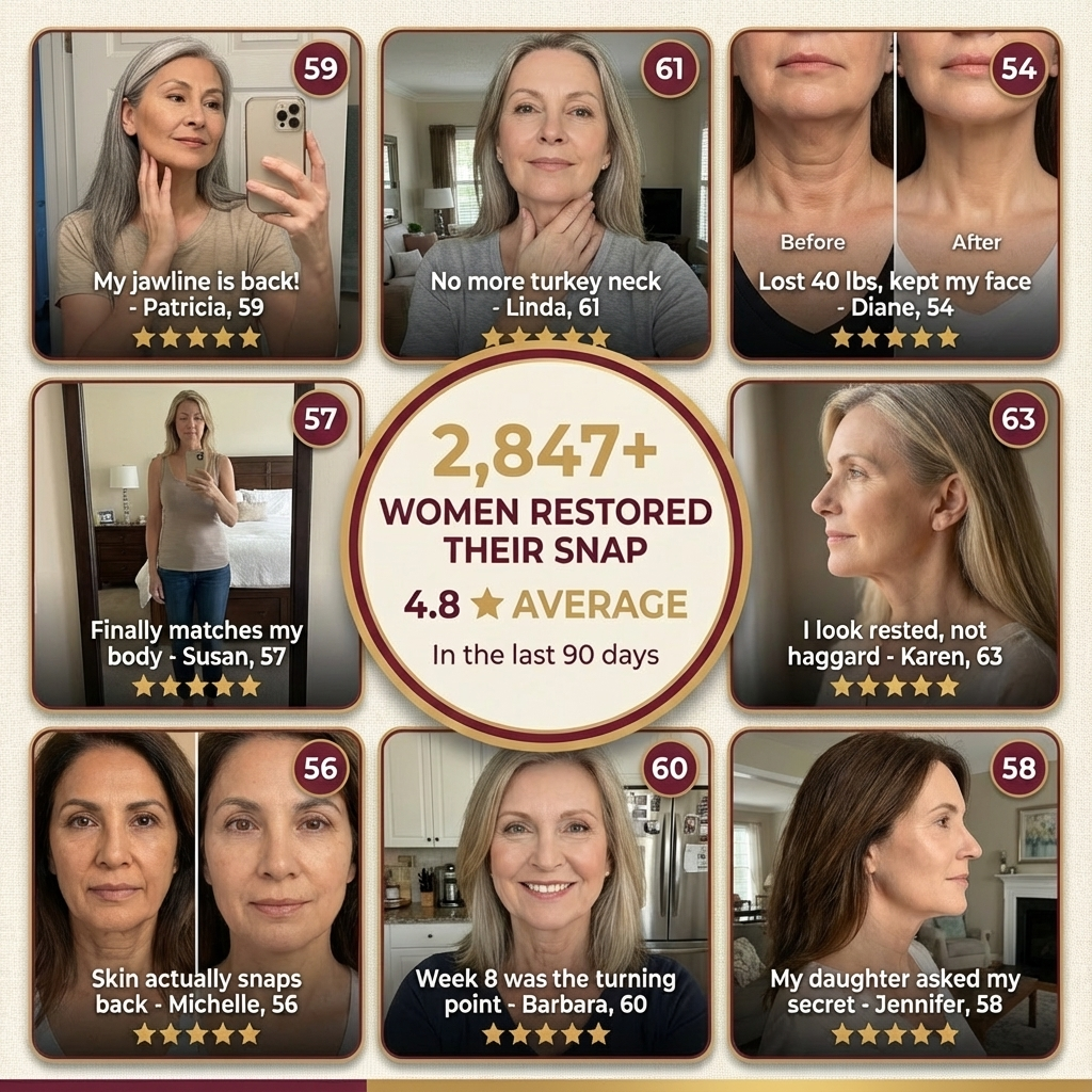 "After menopause, my skin just started... hanging. I'd touch my jawline and it felt loose, like it didn't fit anymore. After 8 weeks of Snap-Back, I have structure again. My face feels like it's gripping the bone."