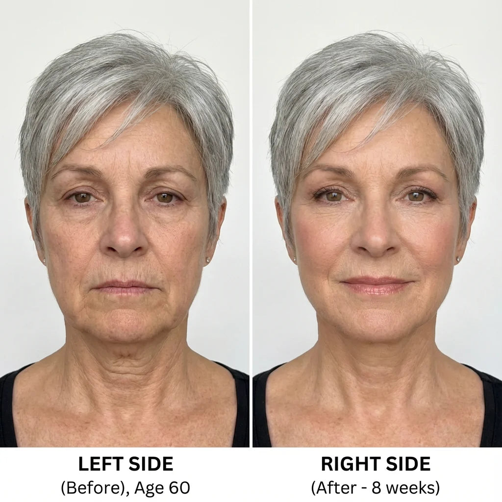 "I'm 62. Hot flashes I expected. But the crepey neck? The jowls? No one warned me about that. This serum absorbed instantly and by week 10, my neck texture was smooth again. I look rested, not haggard."